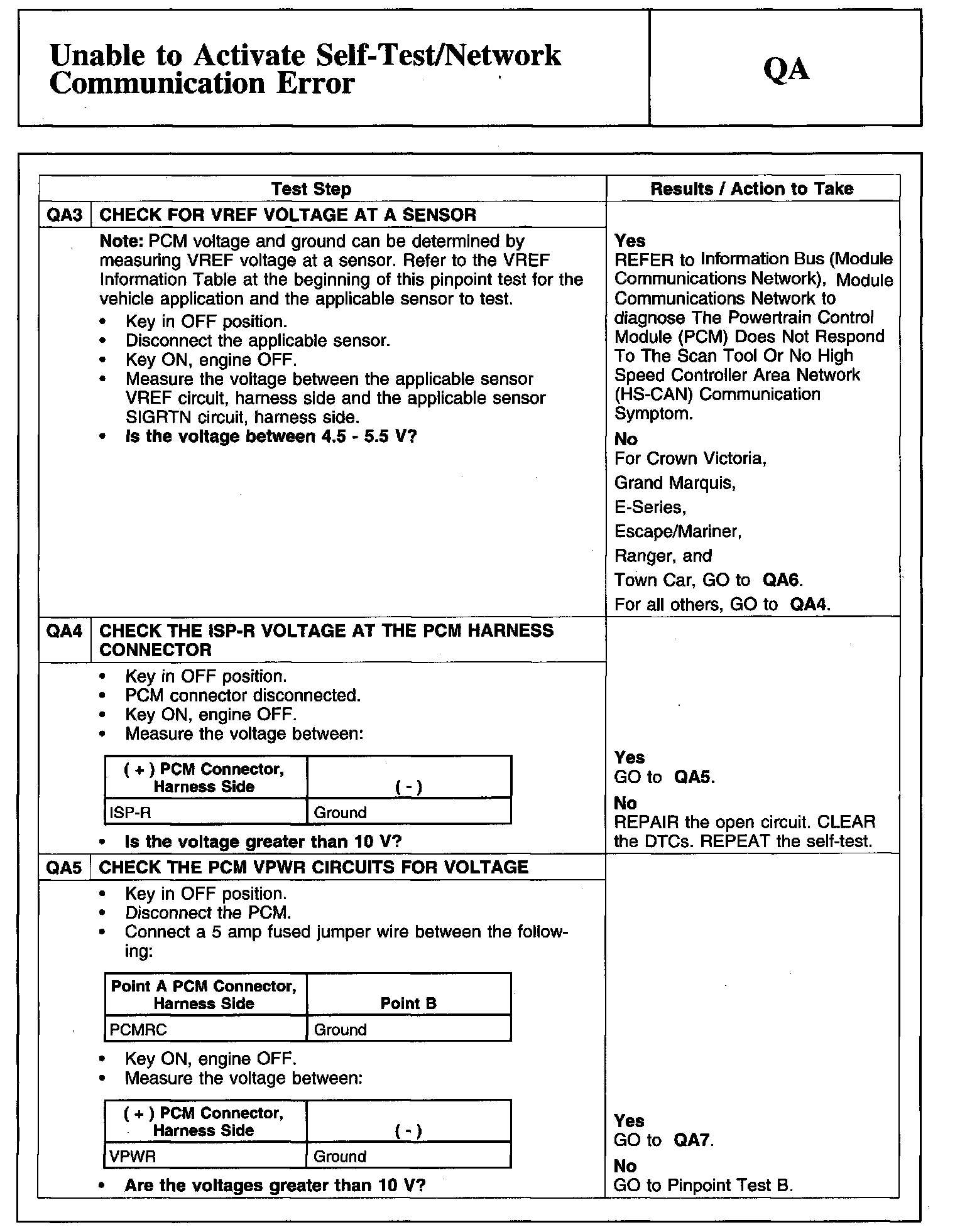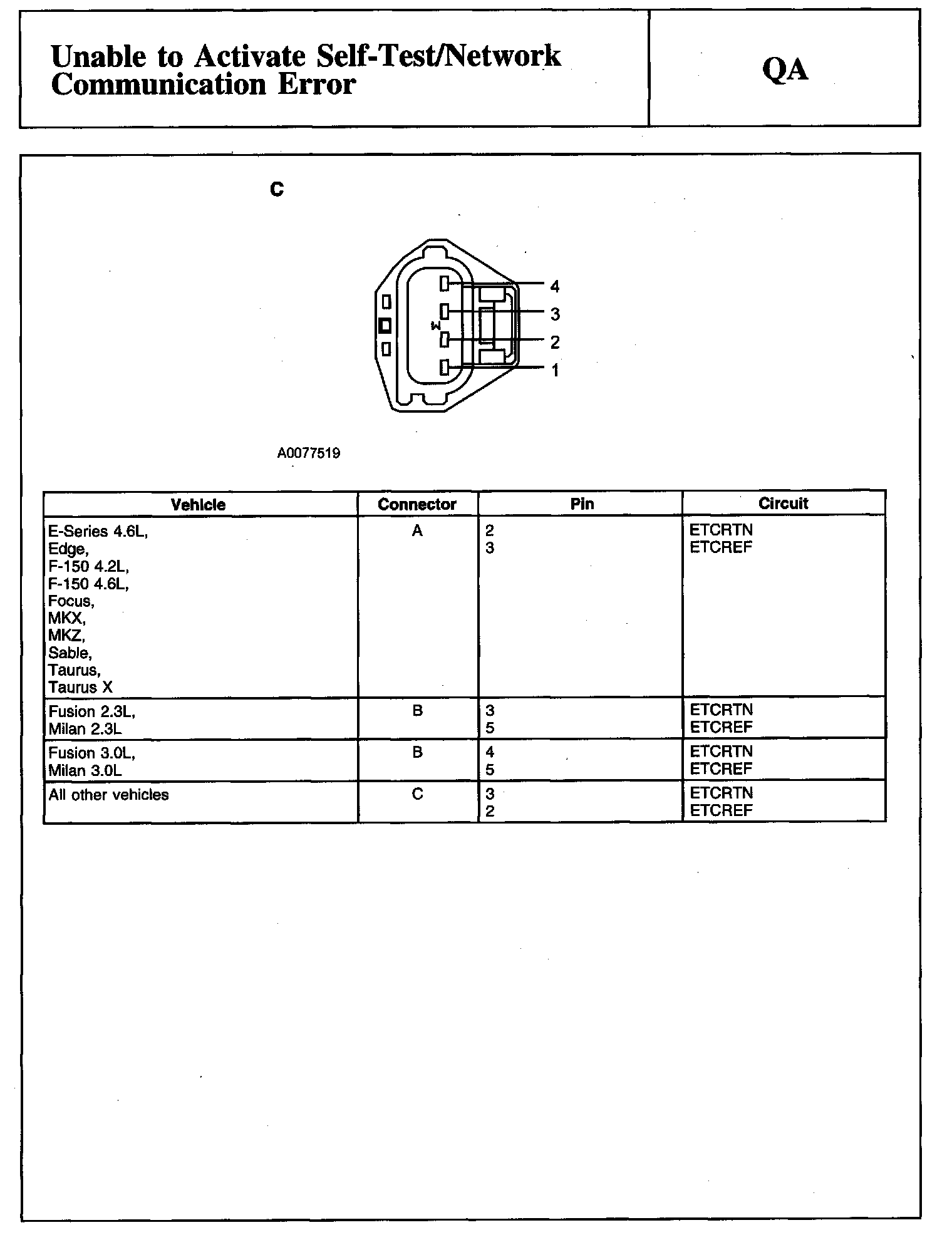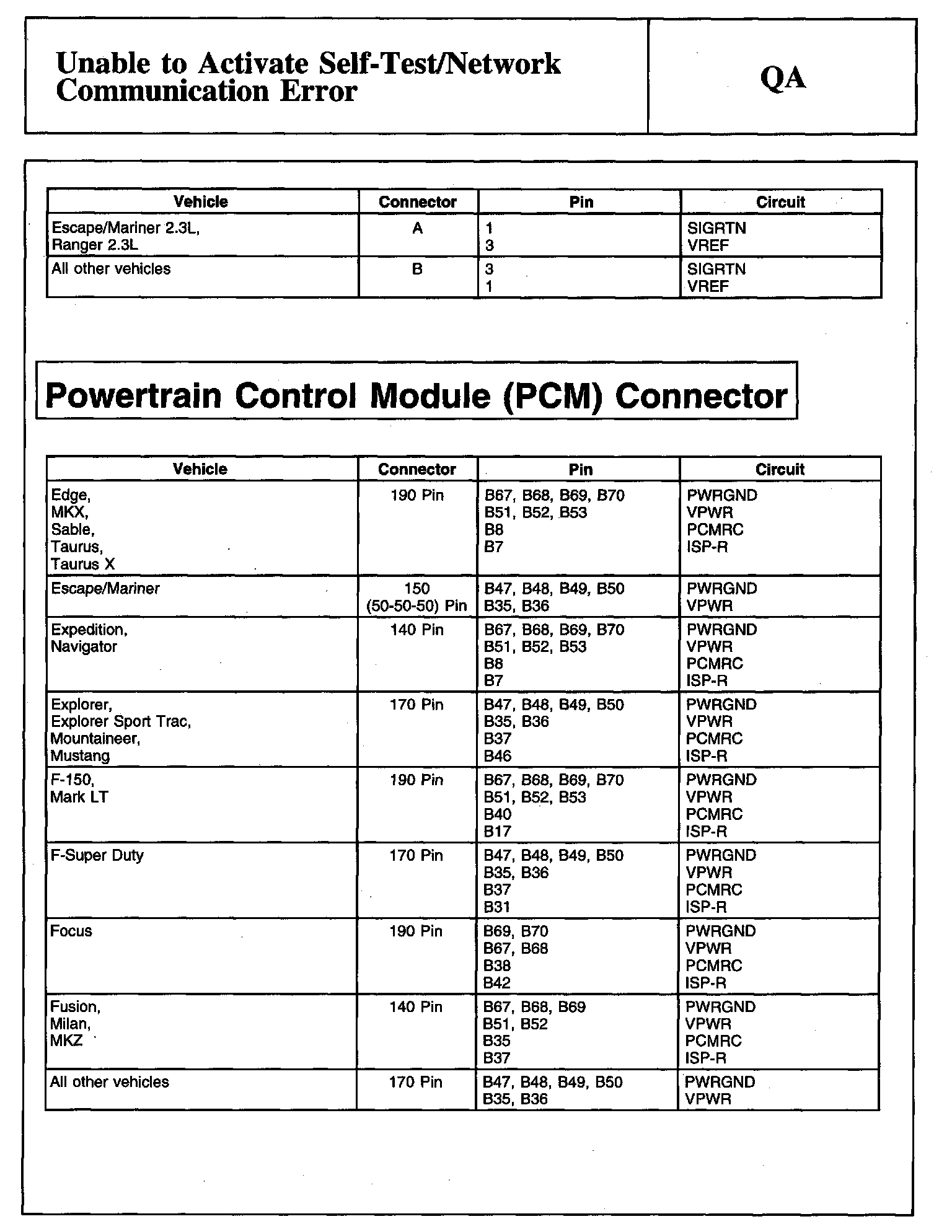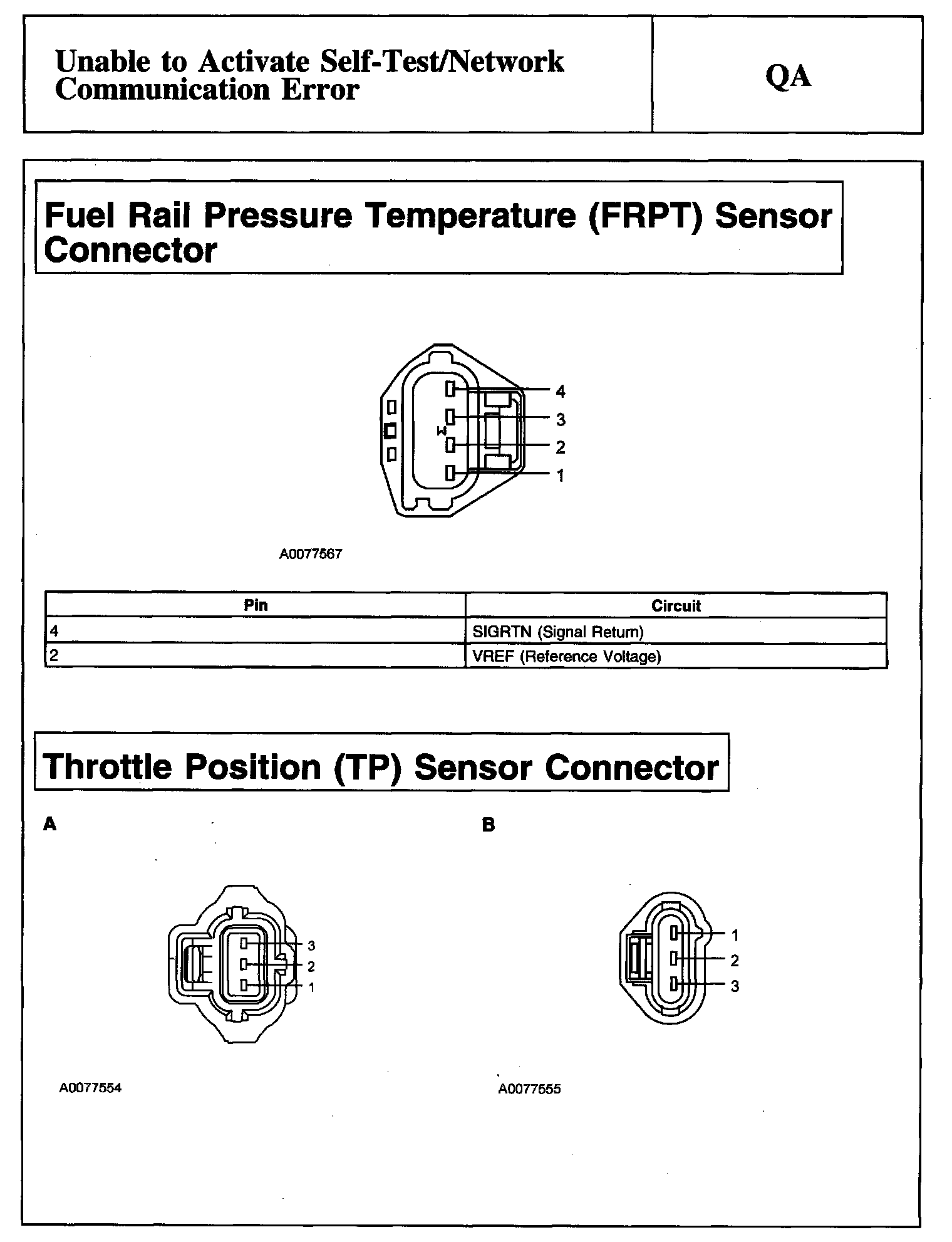PINPOINT TEST QA: UNABLE TO ACTIVATE SELF-TEST/NETWORK COMMUNICATION ERRORDescription, VREF Information Table And Electronic Throttle Body Throttle Position Sensor (ETBTPS) Connector: