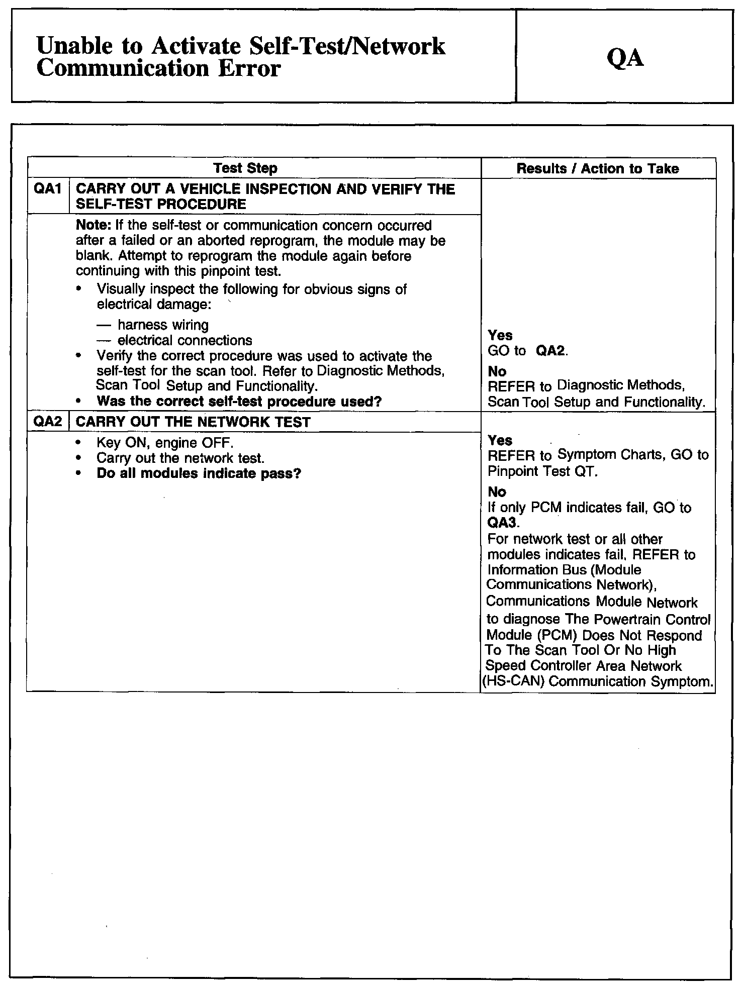 Tests QA: Unable to Activate Self-Test/Network Communication Error