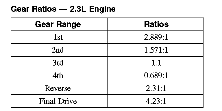 Gear Ratios - 2.3L Engine