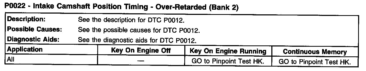P0022 - Intake Camshaft Position Timing - Over-Retarded (Bank 2):