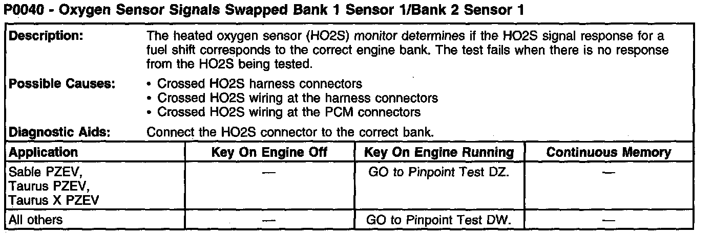 P0040 - Oxygen Sensor Signals Swapped Bank 1 Sensor 1/Bank 2 Sensor 1: