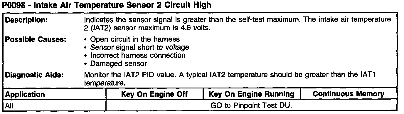 P0098 - Intake Air Temperature Sensor 2 Circuit High: