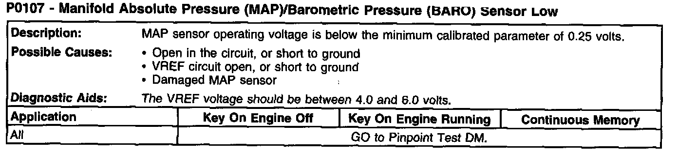 P0107 - Manifold Absolute Pressure (MAP)/Barometric Pressure (BARO) Sensor Low: