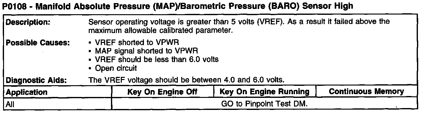 P0108 - Manifold Absolute Pressure (MAP)/Barometric Pressure (BARO) Sensor High: