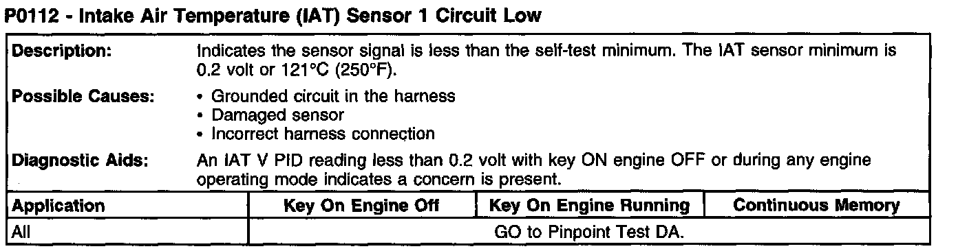 P0112 - Intake Air Temperature (IAT) Sensor 1 Circuit Low: