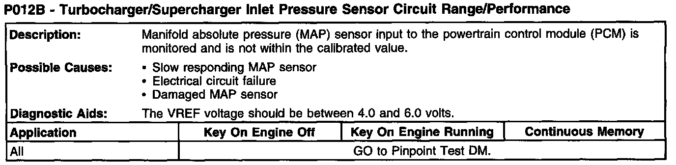 P012B - Turbocharger/Supercharger Inlet Pressure Sensor Circuit Range/Performance: