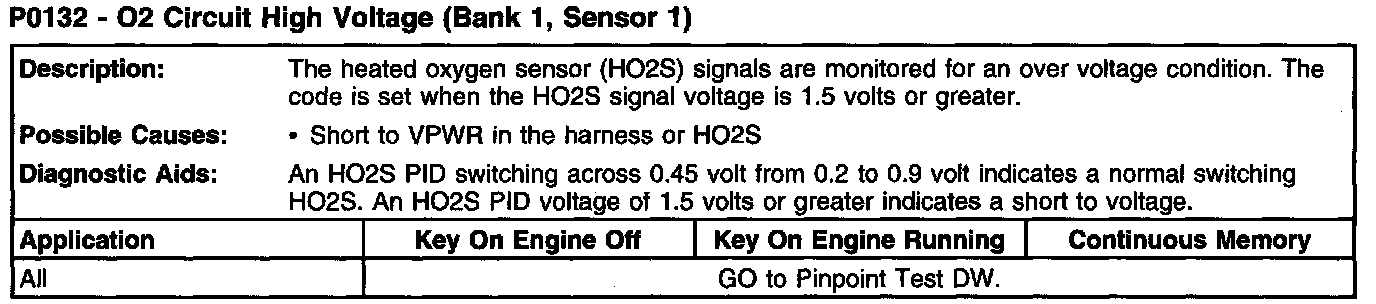 P0132 - O2 Circuit High Voltage (Bank 1, Sensor 1):
