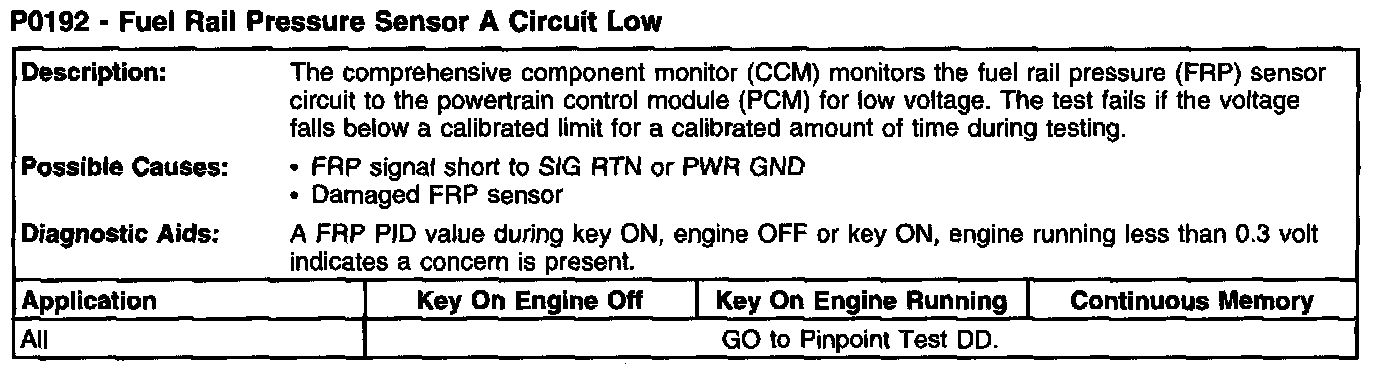 P0192 - Fuel Rail Pressure Sensor A Circuit Low: