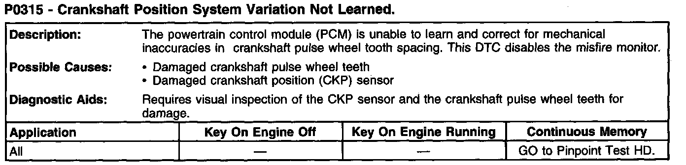 P0315 - Crankshaft Position System Variation Not Learned: