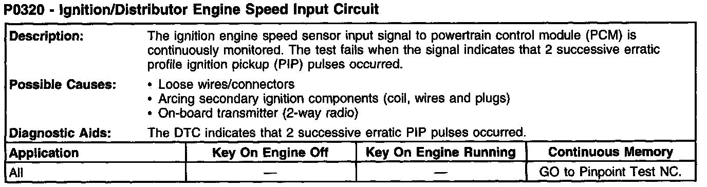 P0320 - Ignition/Distributor Engine Speed Input Circuit: