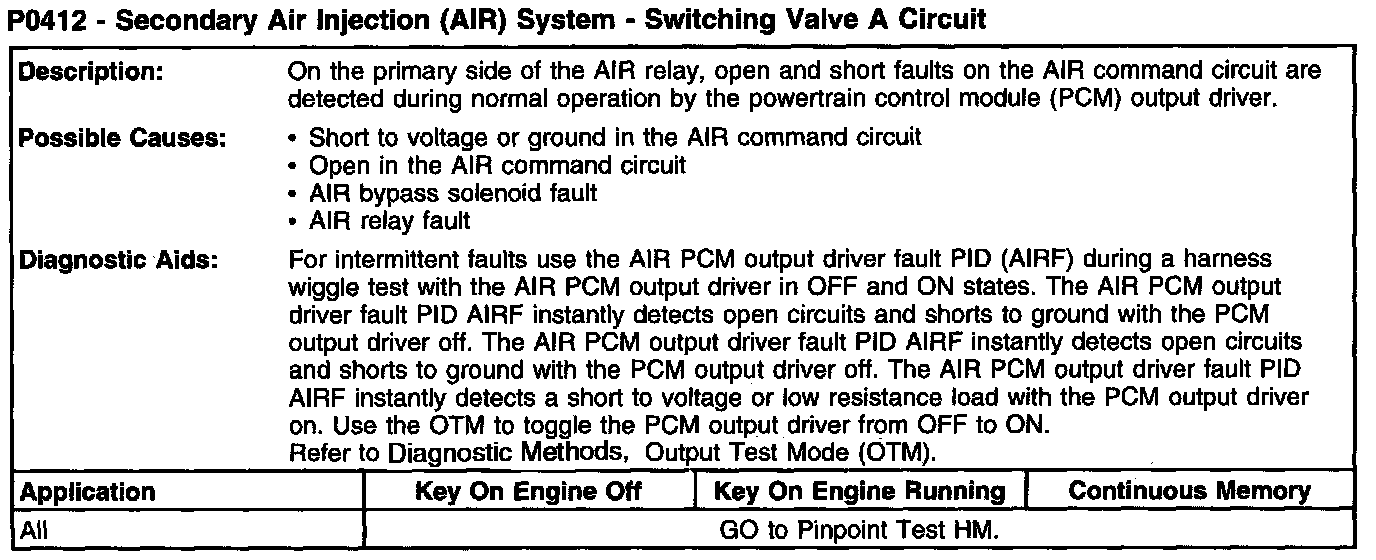 P0412 - Secondary Air Injection (AIR) System - Switching Valve A Circuit: