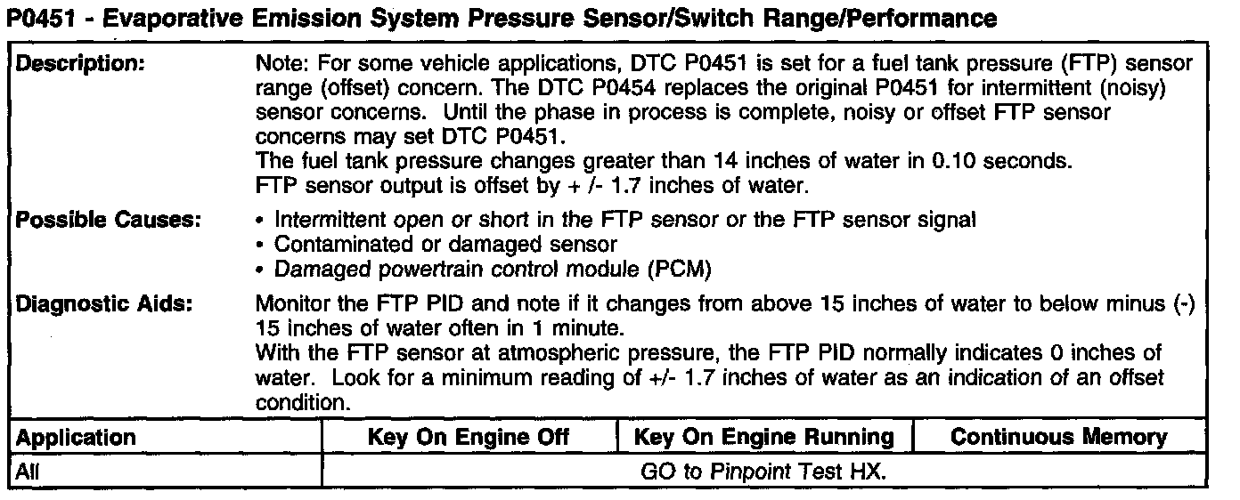 P0451 - Evaporative Emission System Pressure Sensor/Switch Range/Performance: