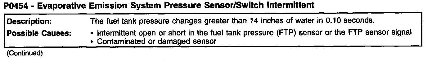 P0454 - Evaporative Emission System Pressure Sensor/Switch Intermittent (part 2):