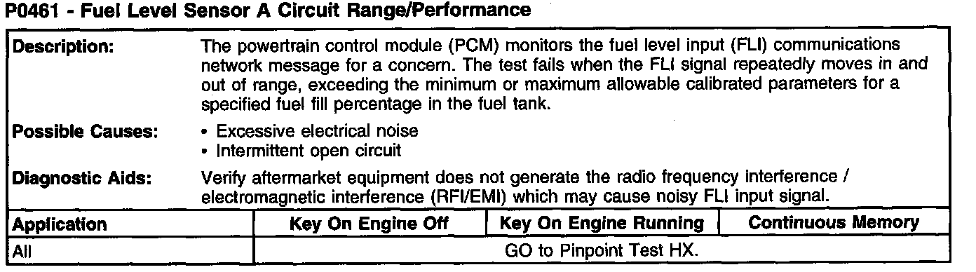 P0461 - Fuel Level Sensor A Circuit Range/Performance:
