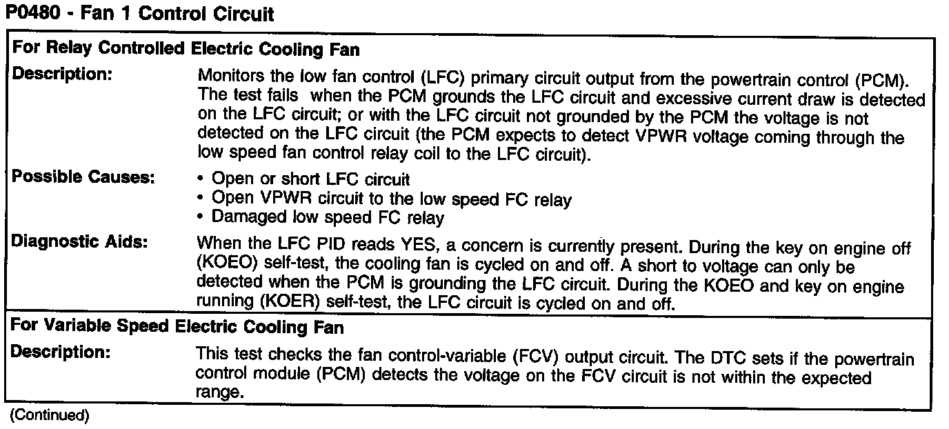 P0480 - Fan 1 Control Circuit (Part 2):
