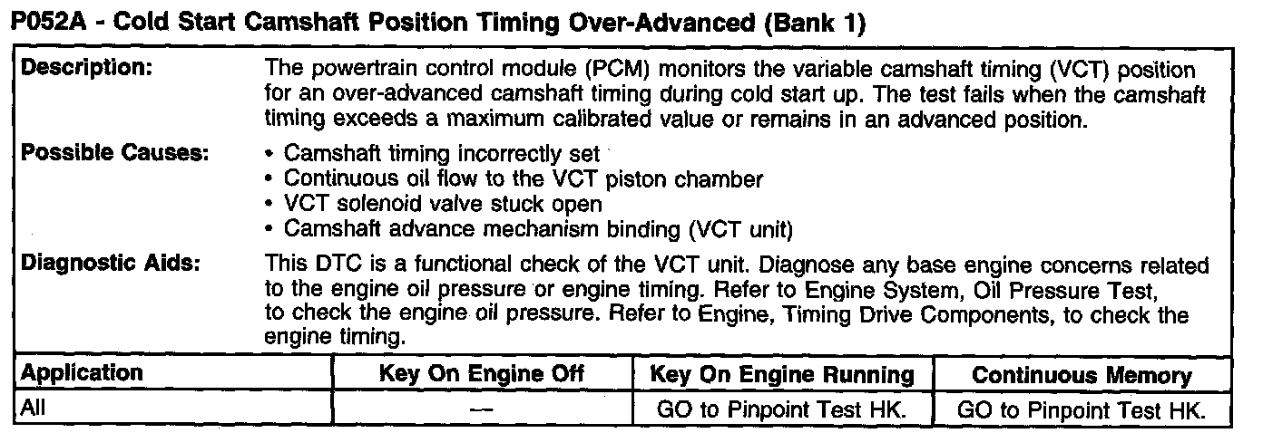 P052A - Cold Start Camshaft Position Timing Over-advanced (Bank 1):
