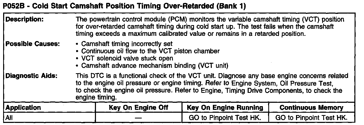 P052B - Cold Start Camshaft Position Timing Over-Retarded (Bank 1):