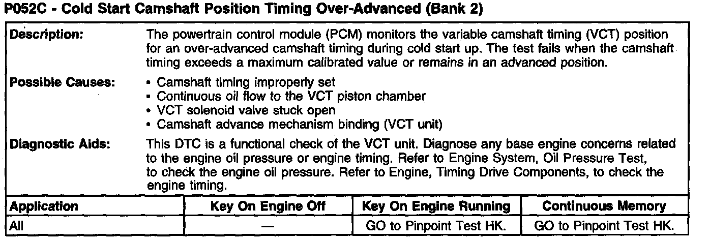 P052C - Cold Start Camshaft Position Timing Over-Advanced (Bank 2):
