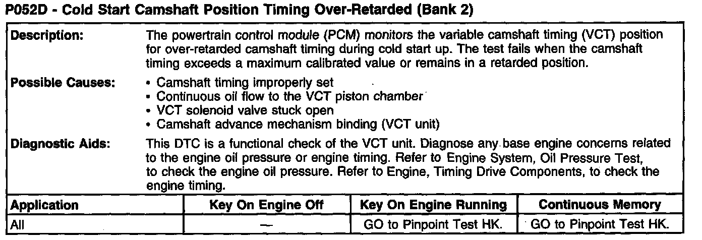 P052D - Cold Start Camshaft Position Timing Over-Retarded (Bank 2):