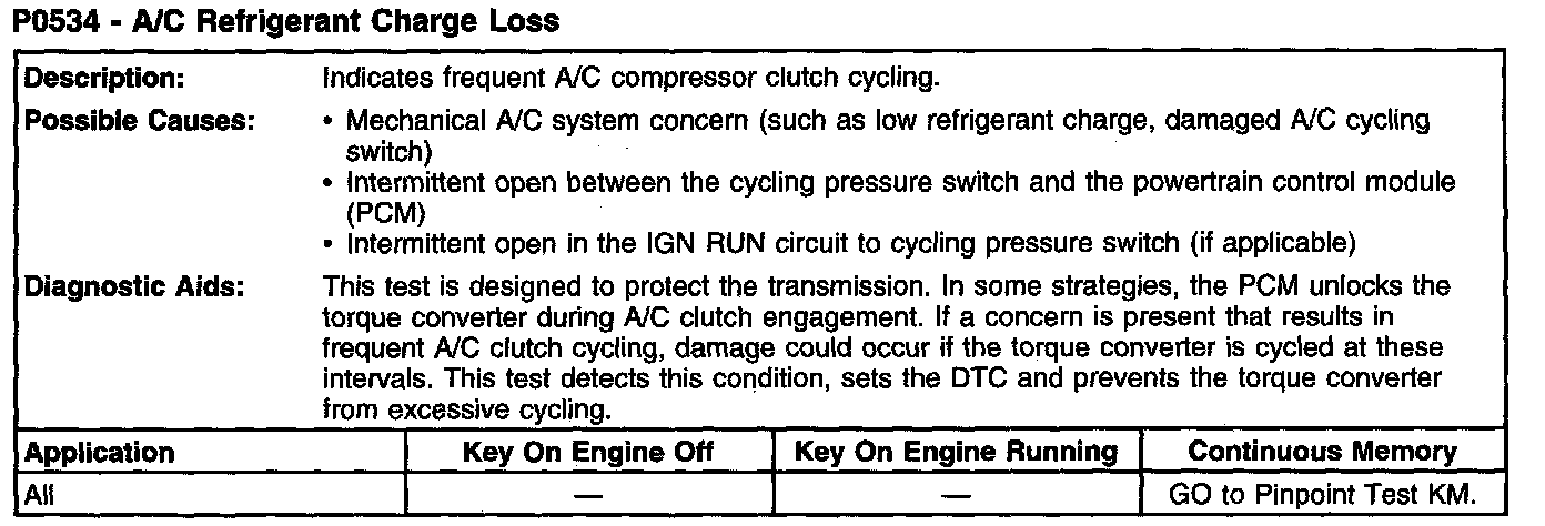 P0534 - A/C Refrigerant Charge Loss: