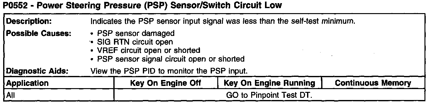 P0552 - Power Steering Pressure (PSP) Sensor/Switch Circuit Low:
