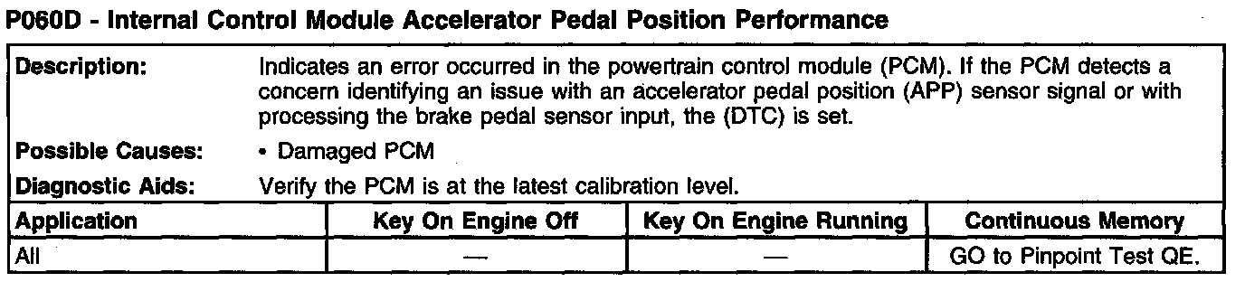 P060D - Internal Control Module Accelerator Pedal Position Performance: