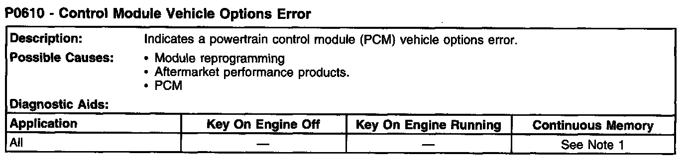 P0610 - Control Module Vehicle Options Error: