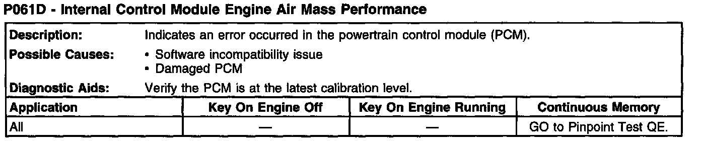 P061D - Internal Control Module Engine Air Mass Performance: