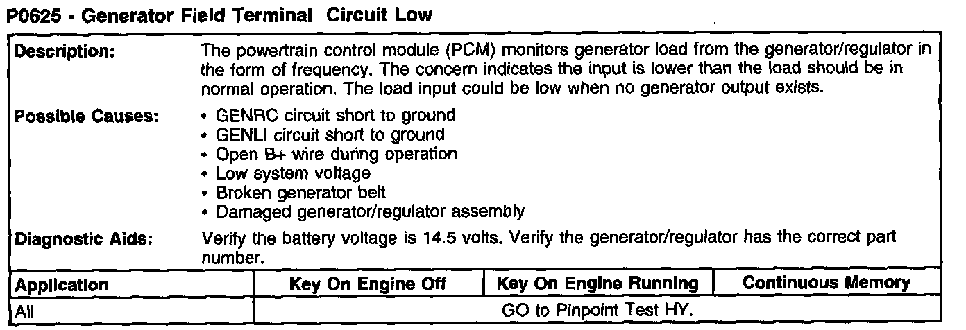 P0625 - Generator Field Terminal Circuit Low: