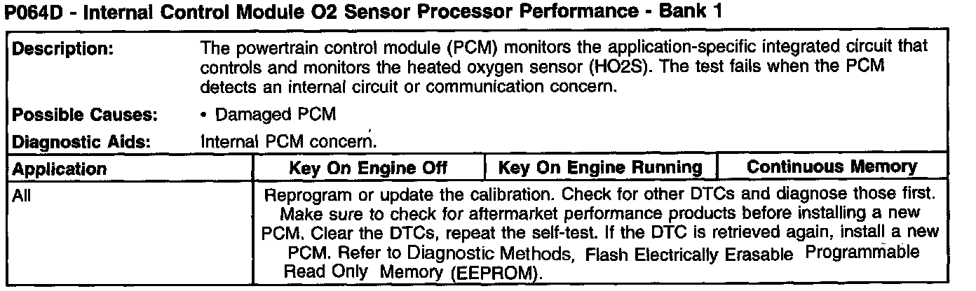 P064D - Internal Control Module O2 Sensor Processor Performance - Bank 1: