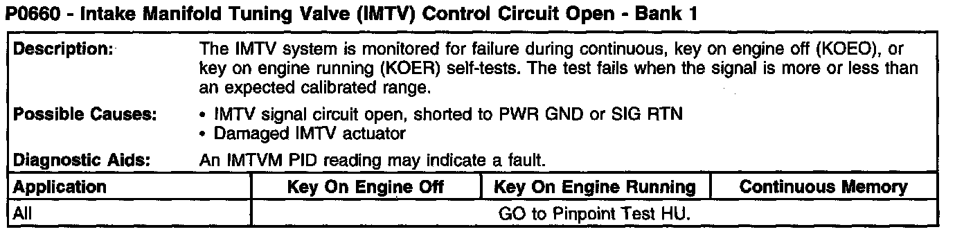 P0660 - Intake Manifold Tuning Valve (IMTV) Control Circuit Open - Bank 1: