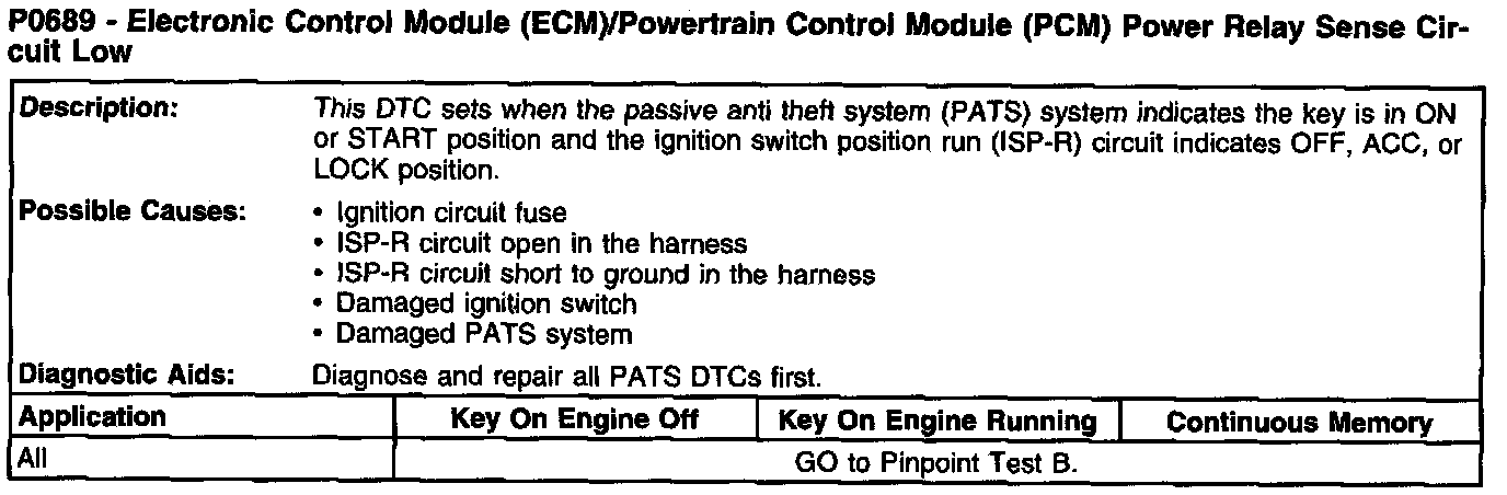 P0689 - Electronic Control Module (ECM)/Powertrain Control Module (PCM) Power Relay Sense Circuit Low: