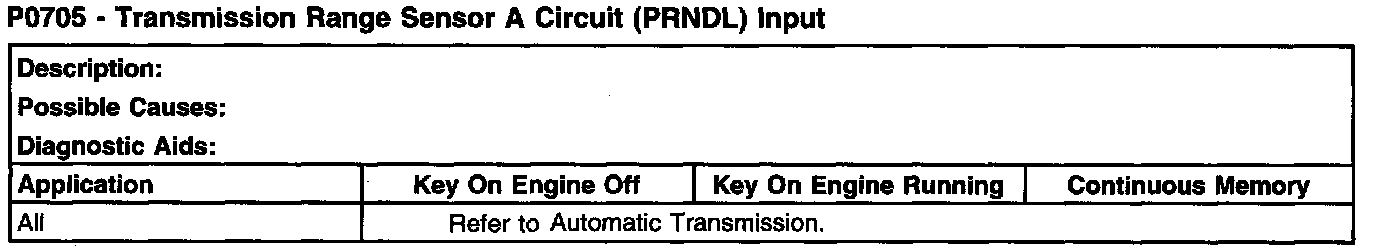 P0705 - Transmission Range Sensor A Circuit (PRNDL) Input: