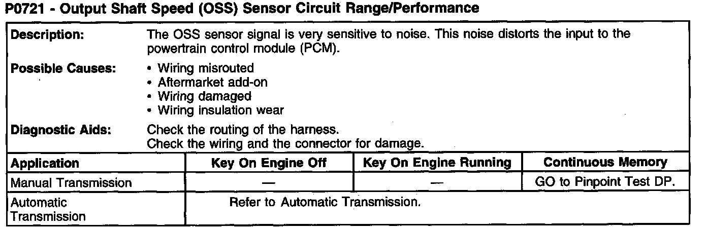 P0721 - Output Shaft Speed (OSS) Sensor Circuit Range/Performance: