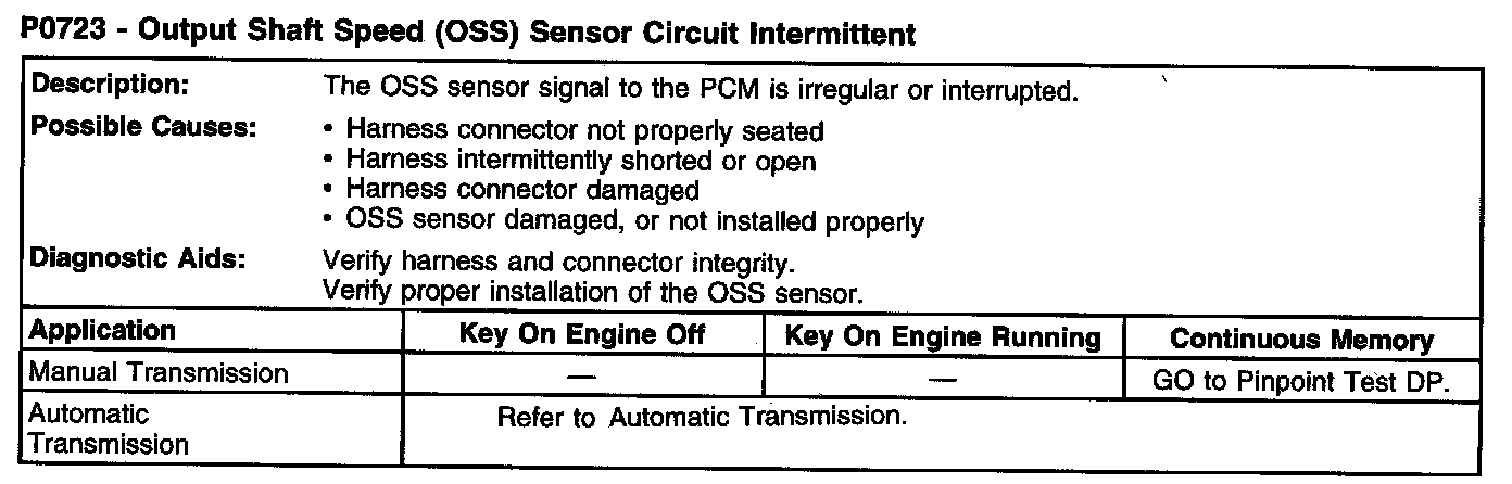 P0723 - Output Shaft Speed (OSS) Sensor Circuit Intermittent: