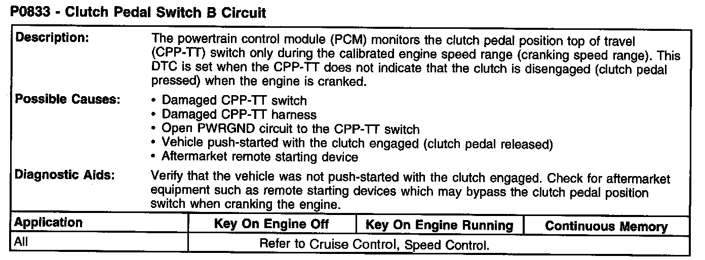 P0833 - Clutch Pedal Switch B Circuit: