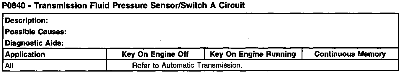P0840 - Transmission Fluid Pressure Sensor/Switch A Circuit: