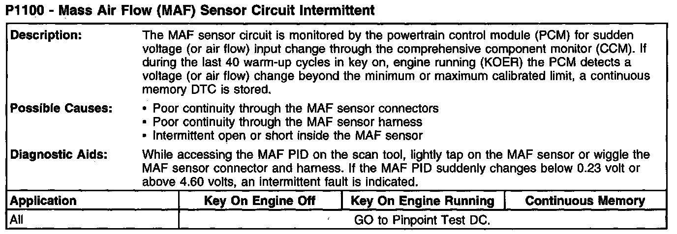 P1100 - Mass Air Flow (MAF) Sensor Circuit Intermittent:
