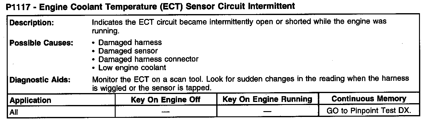 P1117 - Engine Coolant Temperature (ECT) Sensor Circuit Intermittent:
