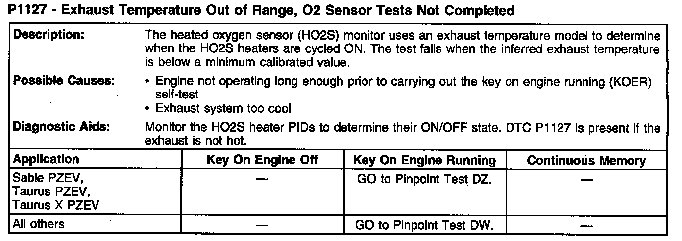 P1127 - Exhaust Temperature Out Of Range, O2 Sensor Tests Not Completed: