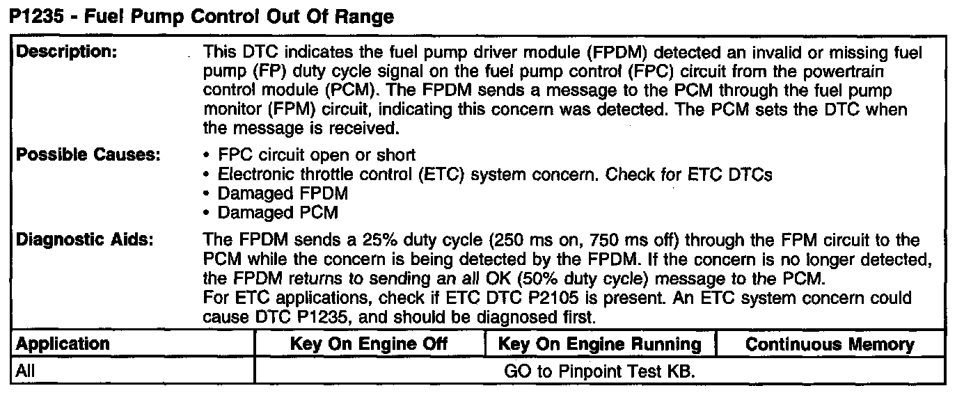 P1235 - Fuel Pump Control Out Of Range: