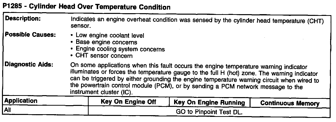 P1285 - Cylinder Head Over Temperature Condition: