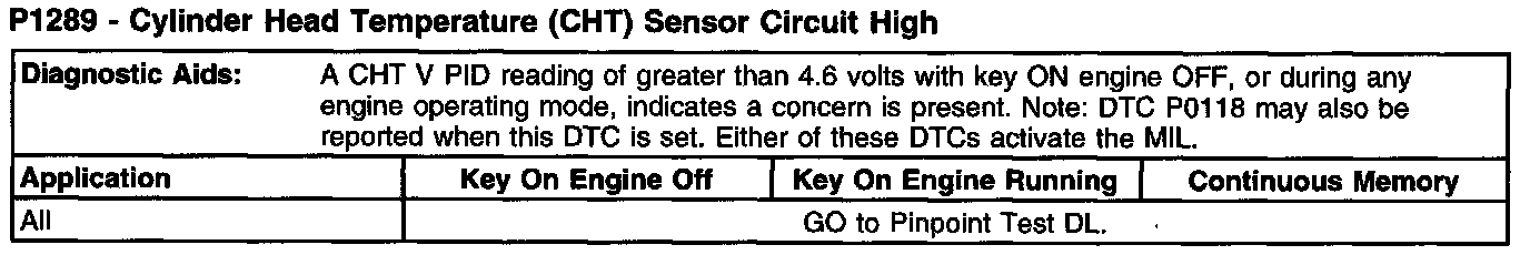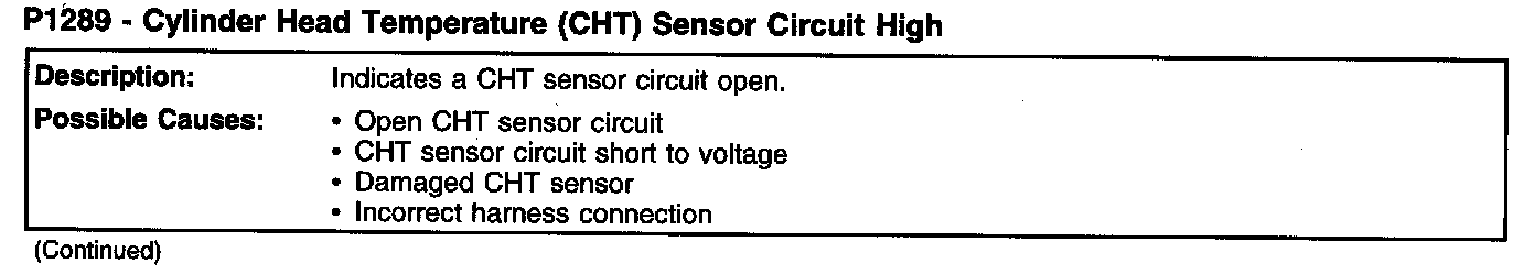 P1289 - Cylinder Head Temperature (CHT) Sensor Circuit High (Part 1):