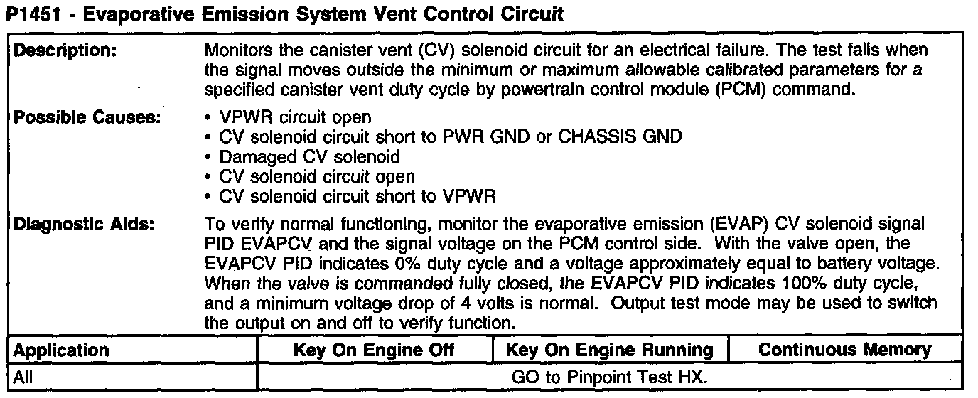 P1451 - Evaporative Emission System Vent Control Circuit: