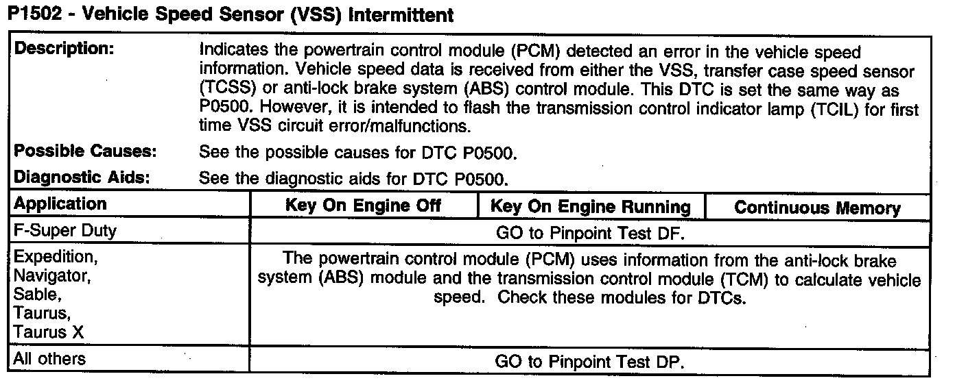 P1502 - Vehicle Speed Sensor (VSS) Intermittent: