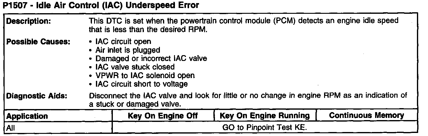 P1507 - Idle Air Control (IAC) Underspeed Error: