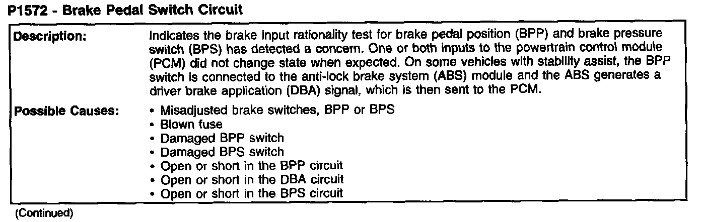 P1572 - Brake Pedal Switch Circuit (Part 1):
