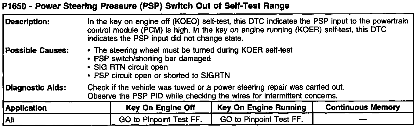 P1650 - Power Steering Pressure (PSP) Switch Out Of Self-Test Range: