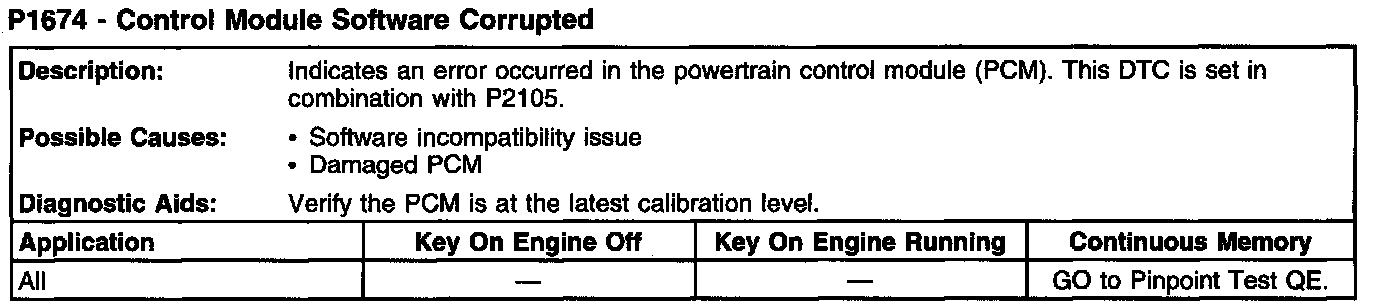 P1674 - Control Module Software Corrupted:
