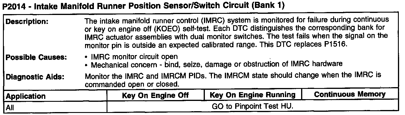 P2014 - Intake Manifold Runner Position Sensor/Switch Circuit (Bank 1):